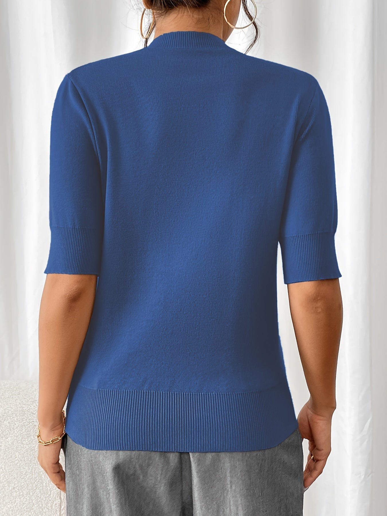 Mantente fresca y elegante con este elegante top de punto de manga corta y cuello falso, perfecto para los días de primavera y verano. Diseñado con una mezcla perfecta de elegancia y comodidad, el ligero tejido de punto proporciona transpirabilidad a la vez que mantiene un aspecto sofisticado. El cuello falso y el acabado elegante la hacen versátil tanto para salidas informales como para ocasiones semiformales. Añade un encanto atemporal a tu vestuario esta temporada.